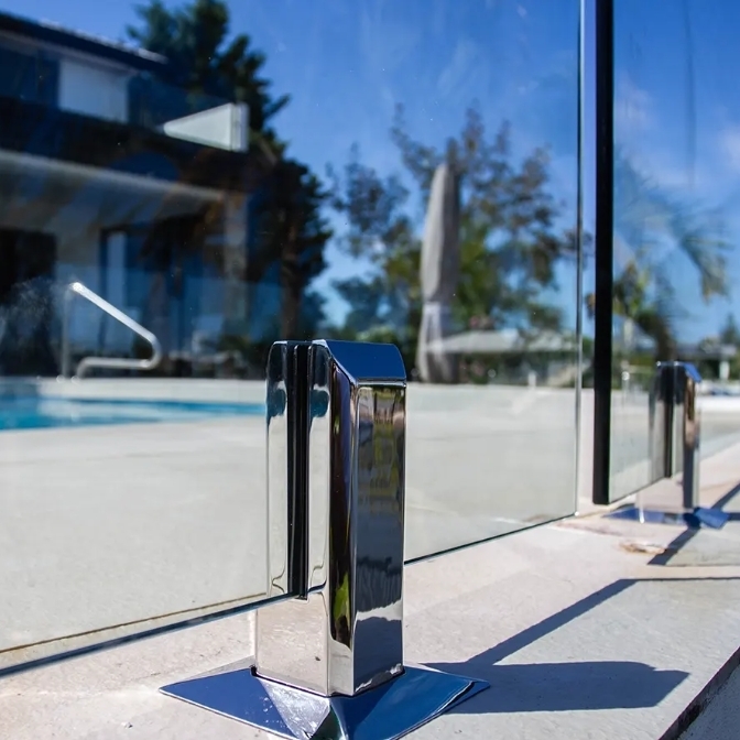 Os guarda-corpos de vidro com spigot, também conhecidos como sistema de guarda-corpos de vidro sem moldura, são um tipo de sistema de guarda-corpos que utiliza vidro como barreira principal com moldura mínima. Os painéis de vidro são fixados ao chão ou superfície com pequenos conectores de metal. Guarda-corpos de vidro com spigots que combinam estética moderna com durabilidade excepcional. Seja para atualizar uma varanda residencial, uma escada comercial ou um recinto de piscina, nossos guarda-corpos de vidro montados com spigot oferecem uma solução sofisticada e segura.